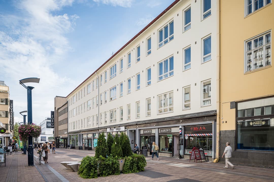 Kävelykadulla nimensä mukaisesti sijaitseva Kävelykatu 18 -arvokiinteistö on mitä parhaimmalla ja keskeisimmällä paikalla Jyväskylän keskustaa! Rakennus on paikallisesti hyvin tunnettu historiansa vuoksi.