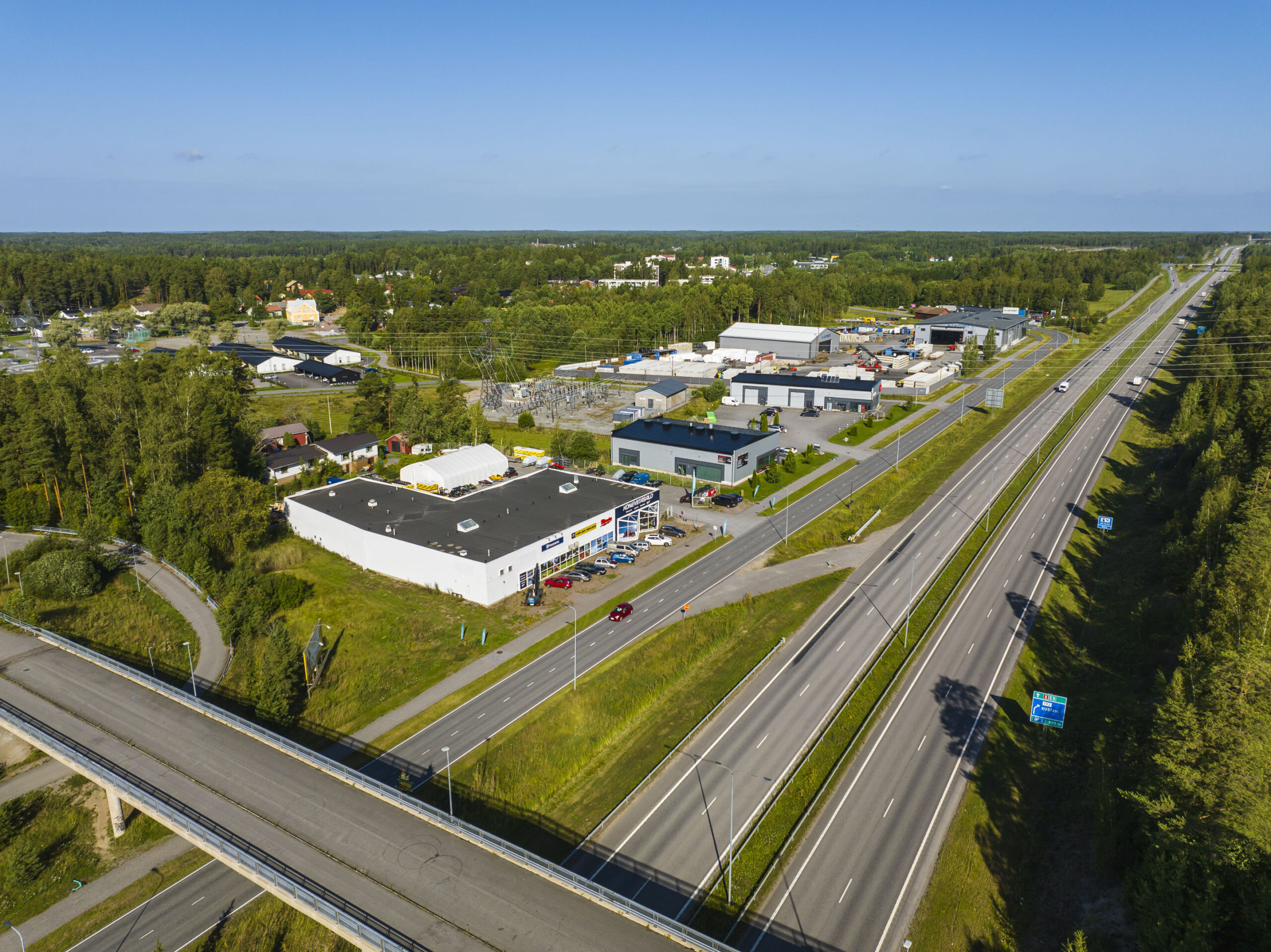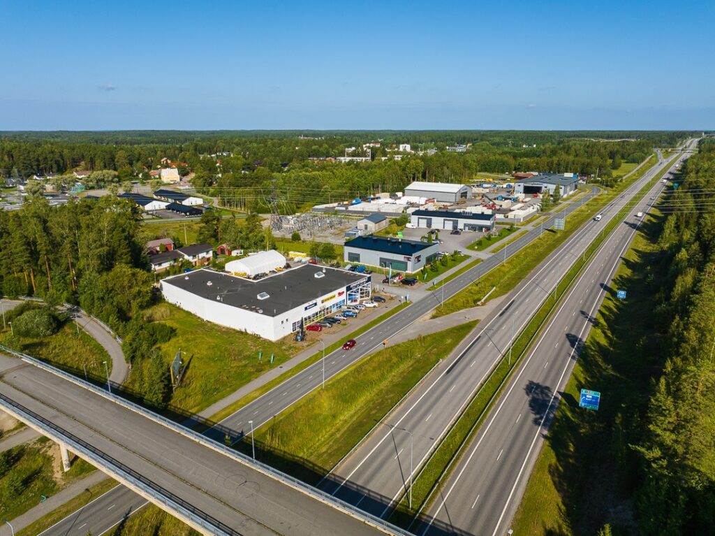 Porin moottoritie (E8) ja Helsinki–Turku-moottoritie (E18) kulkevat aivan vierestä, mikä takaa nopeat yhteydet eri suuntiin. Bussipysäkki on lähellä, ja paikallisliikenteen linjat vievät Turkuun, Raisioon ja Naantaliin. Kiinteistön sijainti tekee siitä houkuttelevan yrityksille, jotka arvostavat helppoa saavutettavuutta ja näkyvyyttä.