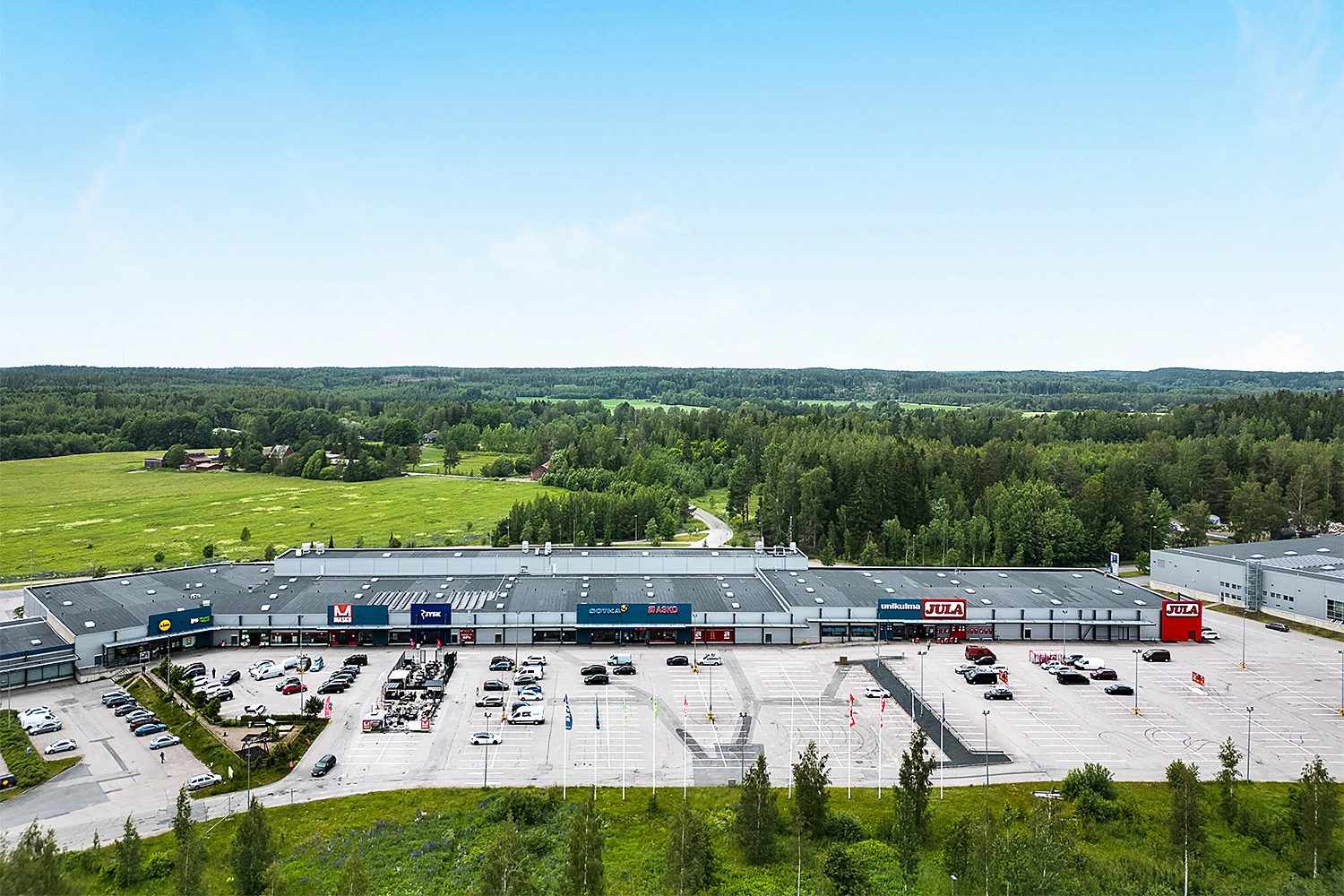 Kiinteistöllä on laaja ja selkeästi jäsennelty pysäköintialue. Pysäköintipaikkoja on runsaasti sekä asiakkaille että vuokralaisten henkilökunnalle.